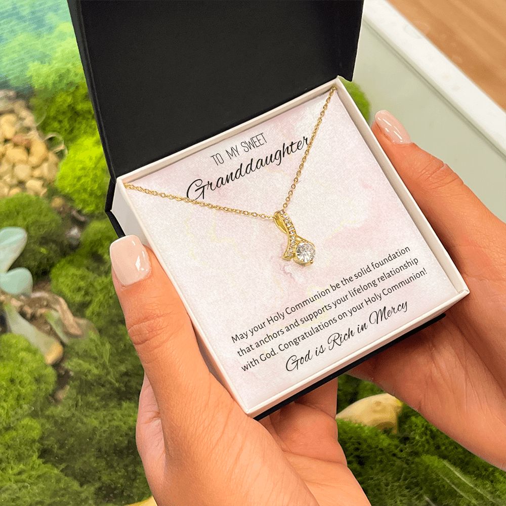 1st Communion Gifts for Granddaughter, Christening, First Communion, Confirmation, Girl Necklace & Best Wishes in Gift Box from Grandmother
